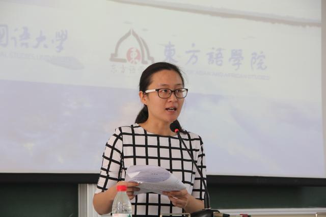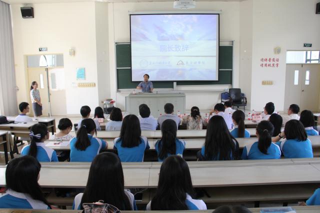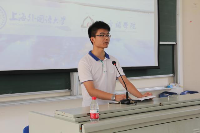 新生代表15级土耳其语班姜艾婕同学首先发言,她和大家分享了自己对于大学新生活的认识,认为在大学中应该“会做人”、“会学习”、“会生活”。随后老生代表13级阿拉伯语班许宽同学向大家讲述了大学里的“小确幸”,呼吁大家学会感恩、珍惜大学时光,把“小确幸”累积成“大确幸”。随后,教师代表泰语班新生导师廖育人老师通过自己的教学经验教导新生同学们养成良好的习惯,渐渐适应大学的生活。