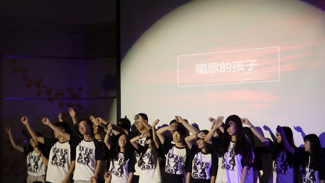晚会渐渐进入高潮,好声音上半轮决赛来临了。选手们深情款款,唱淡淡忧愁,唱如歌岁月,唱忙碌的自己,微信墙上的支持和黑暗中舞动的荧光棒,是给予歌手的最大鼓励。游戏环节更带动了全场老师和同学热情。半场过后,五个追梦女孩带来舞蹈《Rough》,每一个动作都迸发坚定的力量。好声音的后半轮决赛和音乐剧社的激情演绎同样使人沉醉。校十大歌手冠军梁馨予的演唱令每一个观众惊叹不已。最后在《唱歌的孩子》缓缓的歌声中,各位部长副部长们上场,灵动地在台上舞蹈,用欢快的《失恋阵线联盟》结束了这一场晚会。