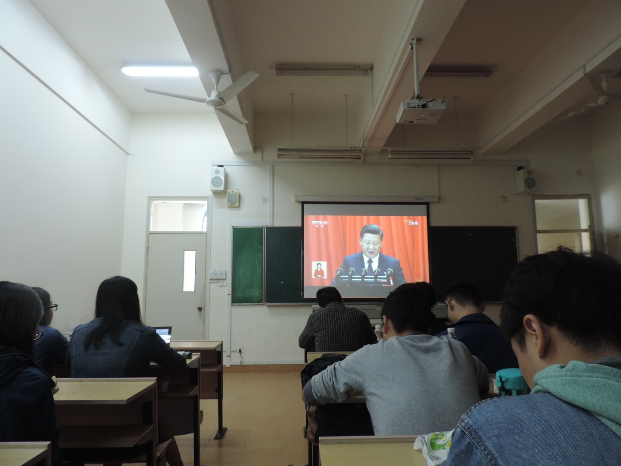 程诗婷(博士生党支部书记):10月18日上午九点,我和党支部的其他同志一共观看了十九大的网络直播。作为一名共产党员,一名中国公民,我为此感到自豪,同时更加清晰了自己的责任和使命。如习总书记所言,“不忘初心,方得始终”,每一个共产党员都需要“登高望远,居安思危”,为了人民的美好生活,勇于奋斗,敢于战斗,实现中华民族的伟大复兴。
