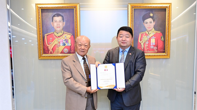 在泰国正大集团总部,正大集团资深副董事长李绍祝会见代表团一行。林学雷向李绍祝转达姜锋书记、李岩松校长的问候,感谢他与正大集团三十年来对上外建设与发展的大力支持。林学雷向李绍祝先生颁发“上外顾问教授”聘书。