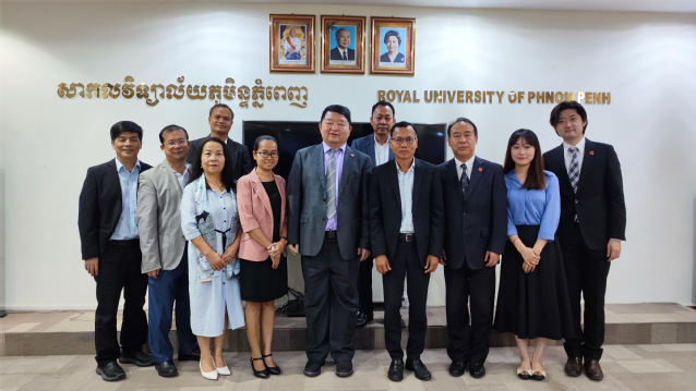 在金边皇家大学,校长郑杰利(Chet Chealy)会见代表团一行。双方就学生交流交换、教师交流访学、联合开展丝路研究和亚非研究等领域开展了深入交流。