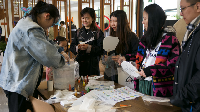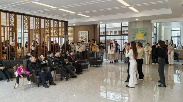 在充满欢声笑语与文化交融的氛围中,“东·艺”多语种文艺表演与多元文化体验活动精彩上演。阿语朗诵《教师颂》、快板《同仁堂》、舞蹈《Armageddon》、小提琴独奏《梁祝》、波斯语歌曲《gol-e-man》、越南语朗诵《将进酒·君不见》、柬埔寨语歌曲《金边之歌》......这些多语种文艺汇演不仅为退休老教师与校友们带来了一场视听盛宴,更让他们深刻感受到学院的多语魅力与在校学生的青春活力。除了精彩的节目表演外,现场还设置了多元文化体验区,校友们在这里参与亲子手工、书法体验、以色列麻将/桌游以及漆扇制作等活动,体验中国传统文化和东院语种对象国多元文化的魅力。