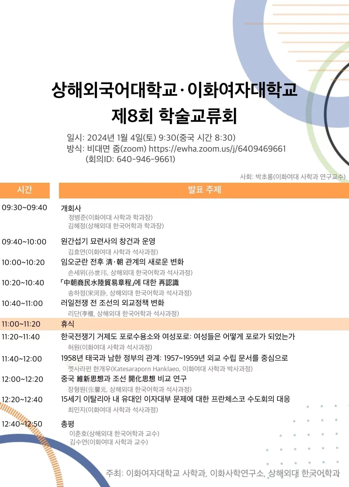 202514日,“第八届上海外国语大学-梨花女子大学研究生学术交流会”如期举行,此次交流会由上海外国语大学东方语学院朝鲜语系与韩国梨花女子大学历史学系联合主办,以线上线下同步会议的形式展开。