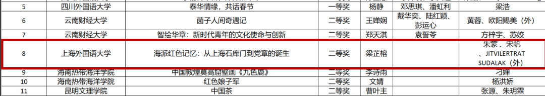 《海派红色记忆:从上海石库门到党章的诞生》由东方语学院2023级泰语专业梁芷榕同学创作,朱蒙、宋帆、JITVILERTRAT SUDALAK(泰籍)老师指导,通过实地探访中国共产党第一次和第二次代表大会的会址,讲述中国共产党的诞生、发展,展现了中国近代历史的变迁。在视频制作过程中,学生再一次回顾了中国共产党百年奋斗历程,通过中泰双语呈现,讲述了中国特有的故事。作品不仅从多语种视角讲述中国近代史,同时也使观看者能够更加理解中国共产党背后的精神与使命,彰显了中国历史文化的魅力。